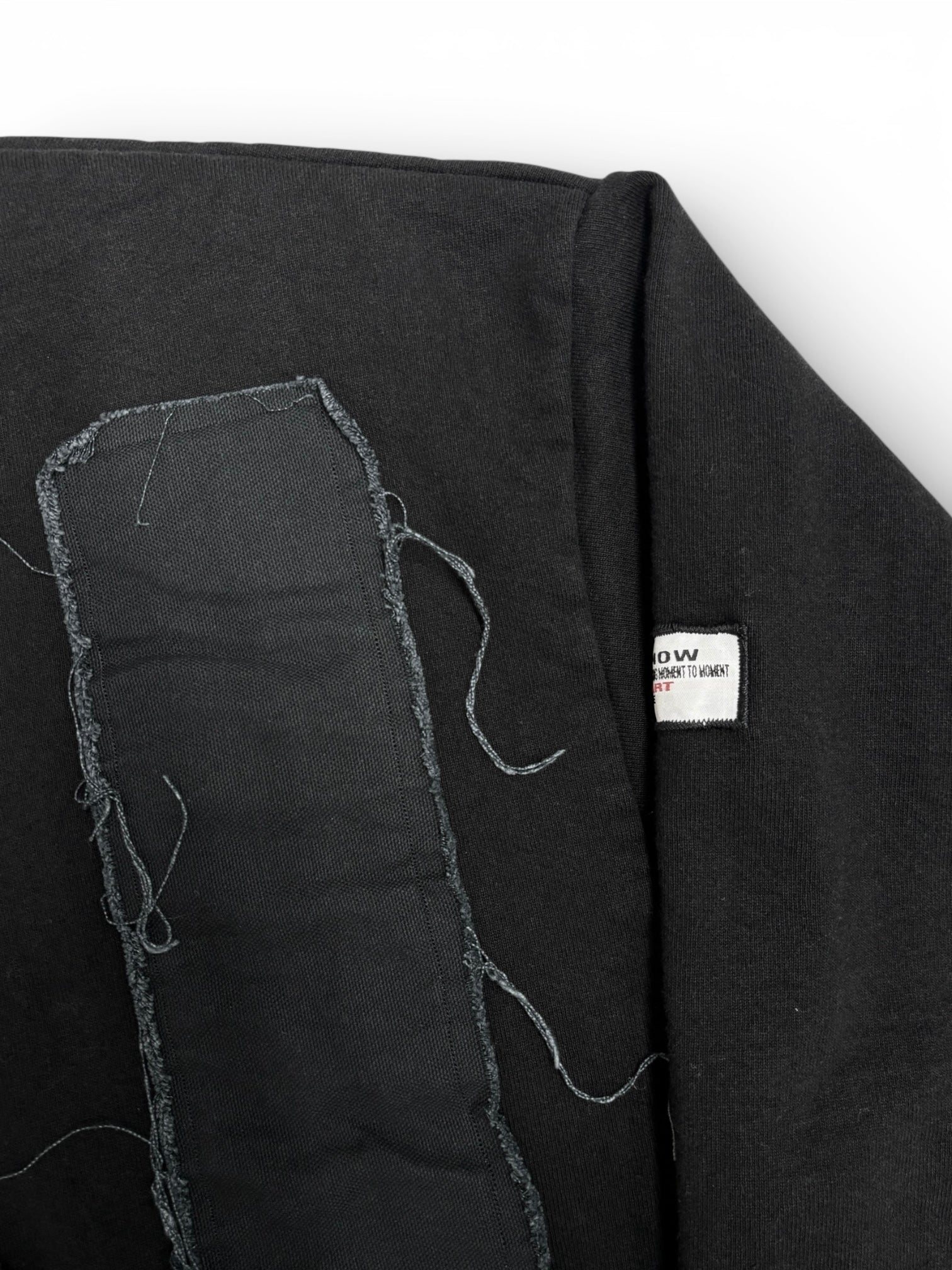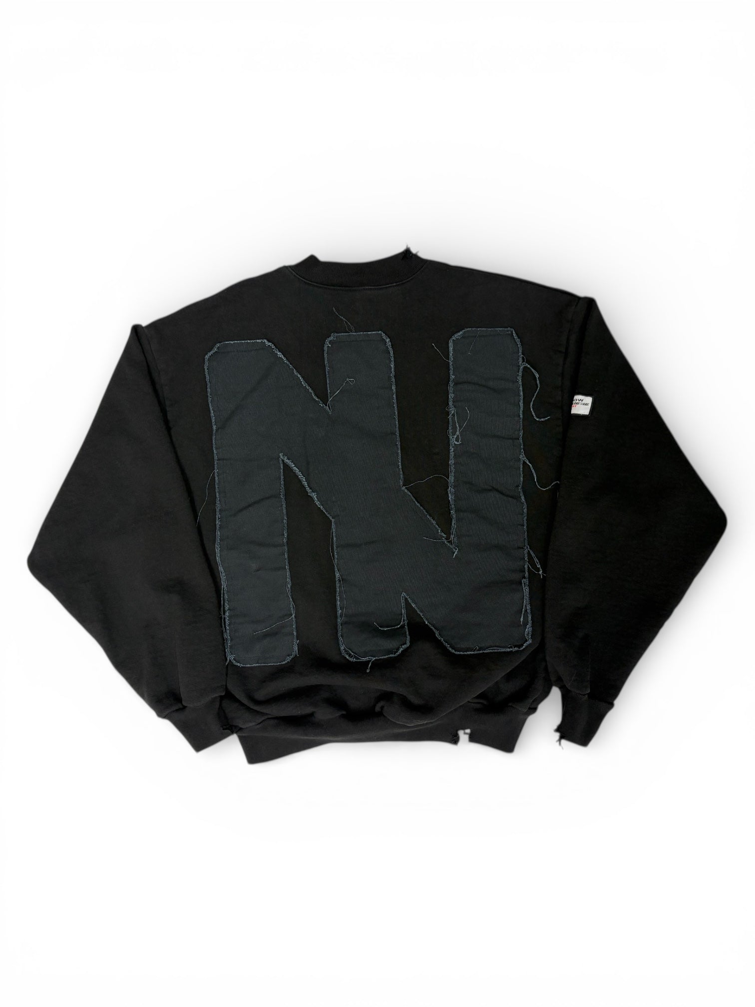 The back features a large, hand-cut and sewn ITN emblem, anchoring the piece with a bold, considered statement.